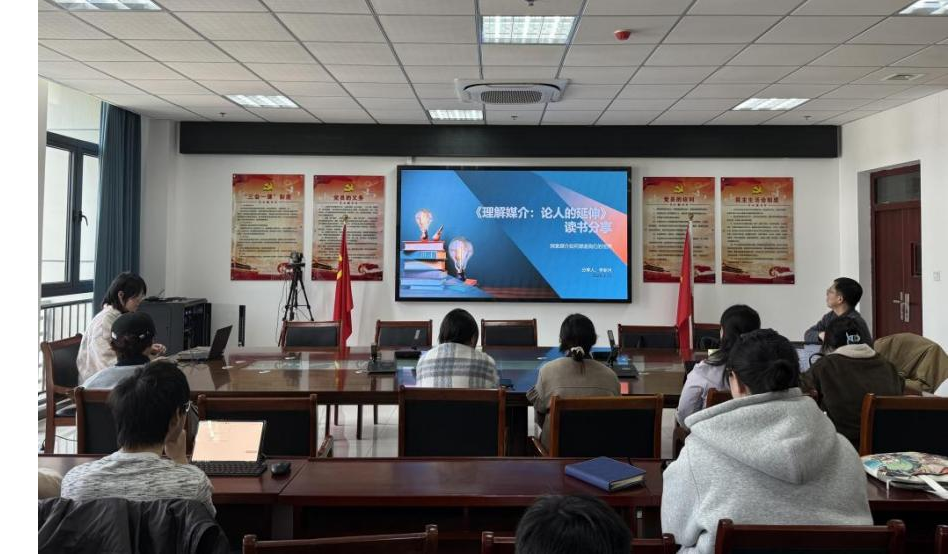 “青苗书社”第二十四期读书会在K408举行。本期读书会汇报人为高文静和李新月,她们分享的书目分别是《技术的本质》和《理解媒介》。本期读书会由刁玉全老师主持并点评,2025级新闻与传播专业全体研究生参与。